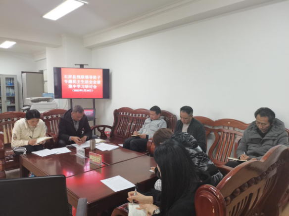 2022年1月24日,石屏县残联举行党史学习教育专题民主生活会暨中央生态环境保护督察题整改专题民主生活会会前集中学习研讨,党支部书记、理事长普文雄主持学习研讨活动,班子成员、各科室长参加学习研讨。
