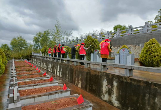 虽然天气阴冷,下着小雨,但全体人员怀着无比崇敬和炙热虔诚的心情开展活动,通过清扫陵园卫生,向英雄烈士纪念碑和烈士墓鞠躬、默哀、敬献鲜花等方式向革命先烈致敬、祭奠。代烈士亲属做好祭扫服务,让烈士亲属感受党和政府的温暖。