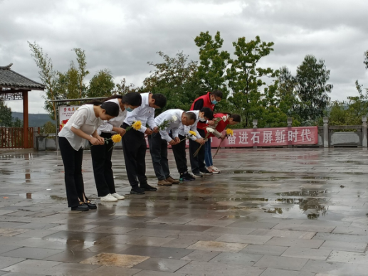 4月1日,石屏县退役军人事务局组织干部职工和部分退役军人志愿服务者在焕文公园烈士纪念园开展烈士代祭扫活动,以文明的方式寄托哀思、缅怀英烈。