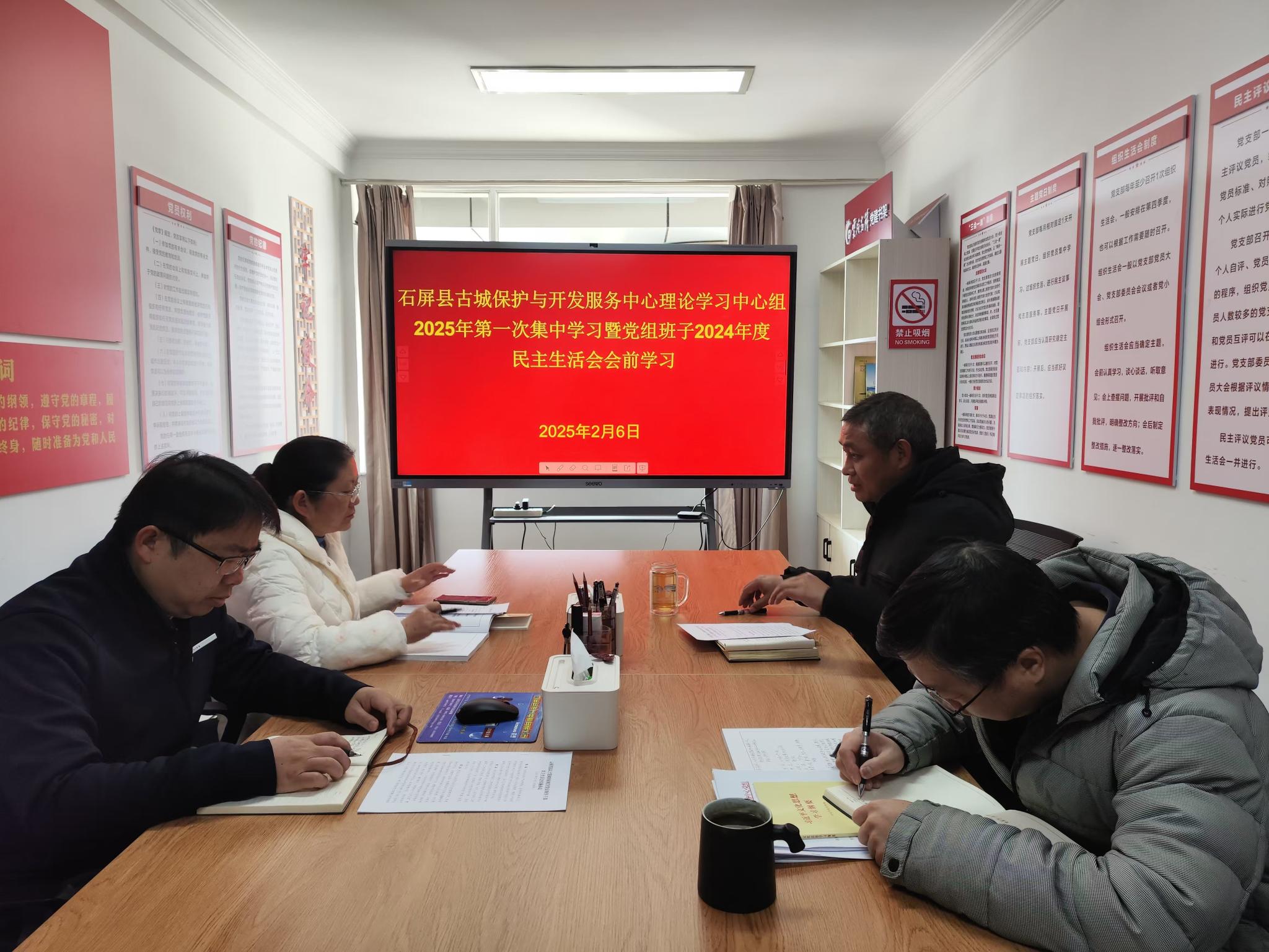 2月6日,中共石屏县古城保护与开发服务中心党组举行理论学习中心组2025年第一次集中学习研讨活动暨党组班子2024年度民主生活会会前学习。县古城保护与开发服务中心党组书记、主任董少龙主持会议。