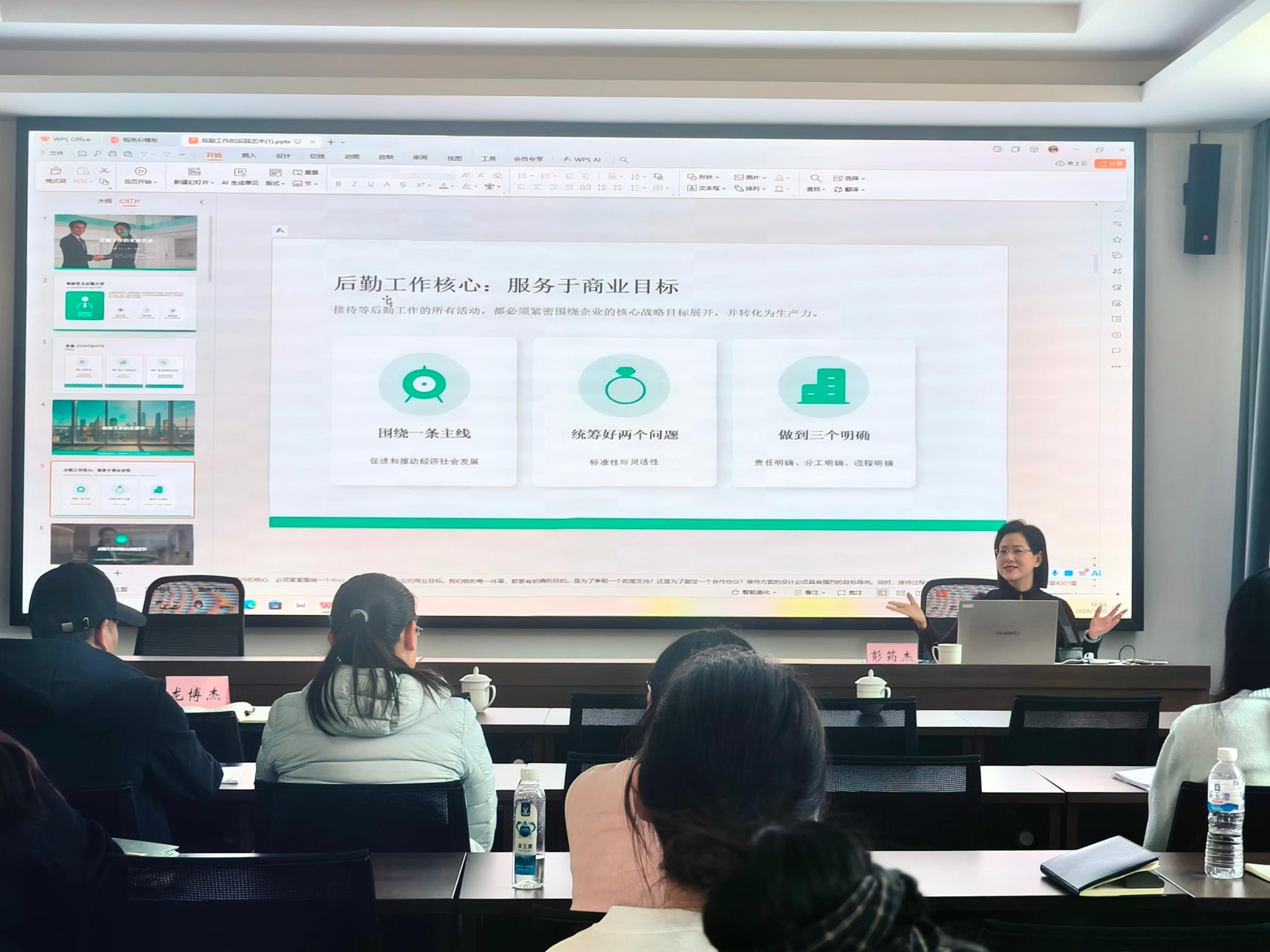 聚焦后勤服务,提升保障水平。 以“ 后勤工作的实践艺术 ” 开展专题培训,重点围绕后勤保障的总要求、接待基本流程及礼仪、会场精细化服务等内容进行讲解,结合实际场景分享实战经验做法,现场解答日常工作中的难点问题,引导企业树立务实节俭、规范高效的后勤保障理念。