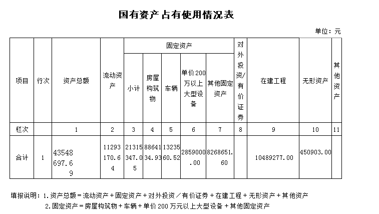 (二)国有资产占用情况